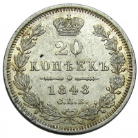 Monety posiadające wspólne notowania, ceny i listę aukcji: 1847, ПА, 1A, 20 kopiejek | 1847, ПА, 1B, 20 kopiejek